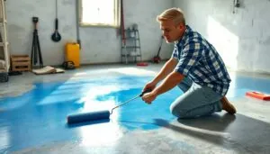 Transforming a dull cement floor into a vibrant masterpiece can